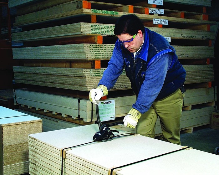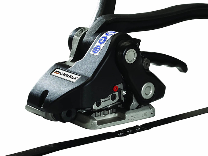 · 免用鐵扣,采用三點上下沖模咬合,利用上下沖模機構(gòu)將鋼帶打出三個陰陽扣互相咬合,抗斷裂強度可達85%,相較傳統(tǒng)鐵扣結(jié)合更加強韌。